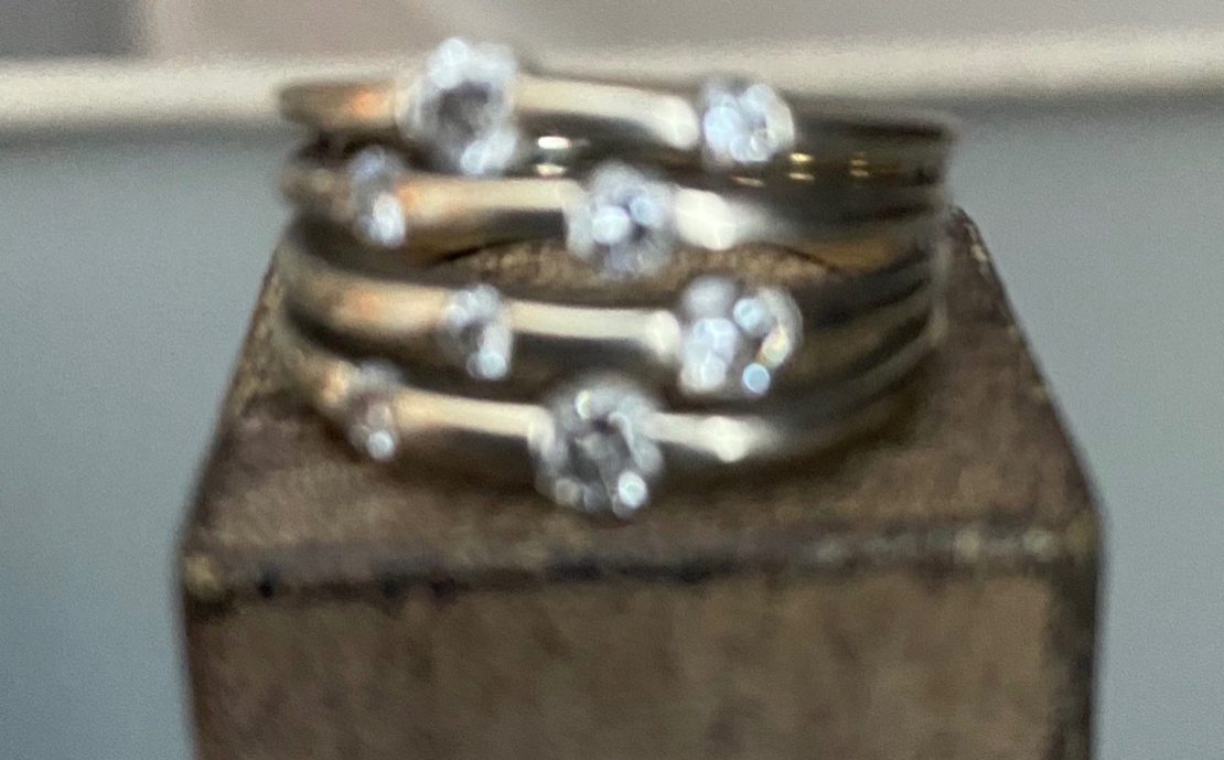 It is a 14-karat white gold ring with four bands spaced a millimeter apart. Each thread follows the same pattern with two diamonds on each row. As I stand in front of the military base jewelry counter on the majestic island home of Mt Fuji, I had found her. My spirit rejoiced, my heart danced, and my soul sang. She cries out to me, beckoning me to come. I place her on my finger and in an instant I knew. Pete was home. Yes, Pete the Swahili name for ring. Pete and I were inseparable. A bond had formed. Without her bright and brilliant exuberance, sitting on my right index finger, I felt lost. How could I know standing their looking down at Pete that I would lose her and when I needed her the most Pete would find her way home.